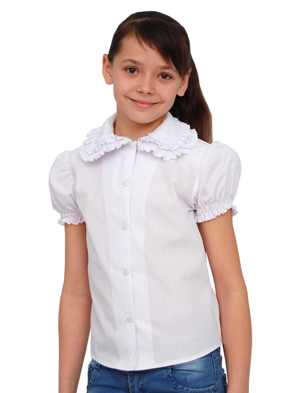 Блуза дитяча для дівчаток шкільна П- 946 розмір 140 біла, нарядна тм "Попелюшка"